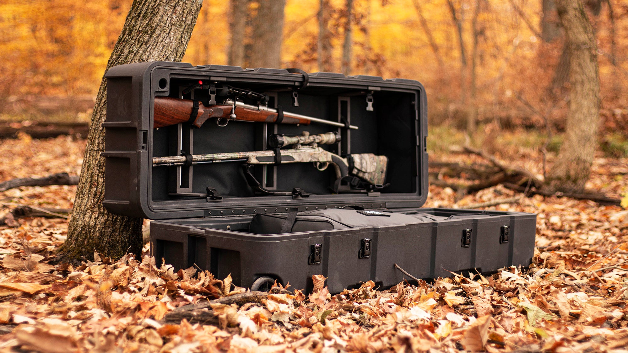 - Modular rail system (3) in upper lid for mounting guns, bows, accessories, and more